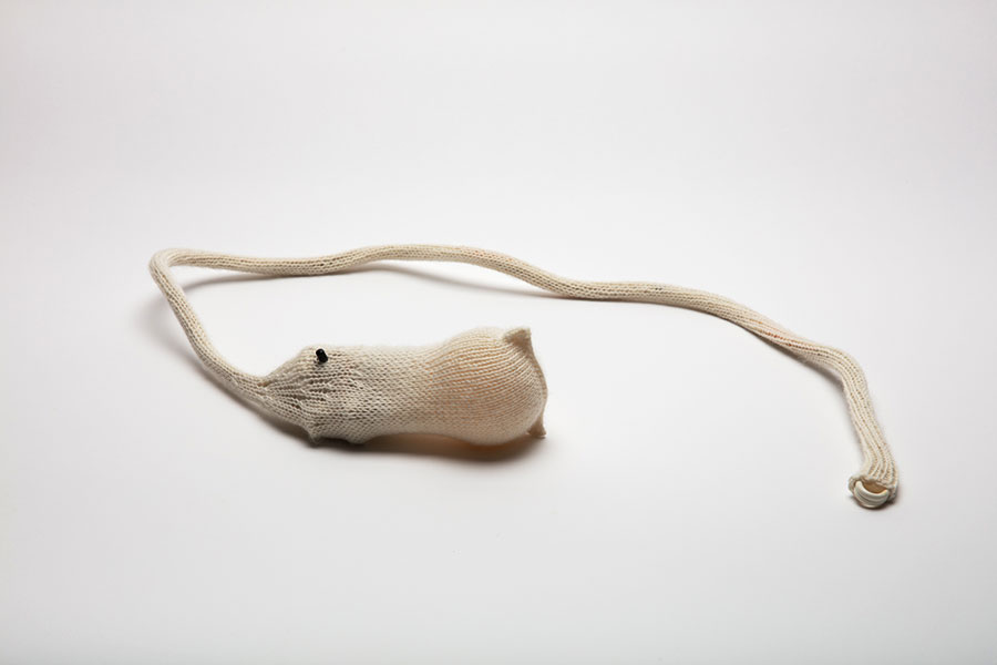 Eileen’s project was based on the history of, and process of researching, the materials and textures of knitting. From this research she was incredibly drawn to Guernsey, an island renowned for its wool sweaters. Intriguingly, in her practice Eileen uses the language of knitting and stitching to shape found objects into small sculptures. Serendipitous encounters while cycling bring her things like broken bike locks, lightbulbs, and rocks, and fibres ‘find their way to me’ through older hands, scrap shops, and even repurposing past projects.