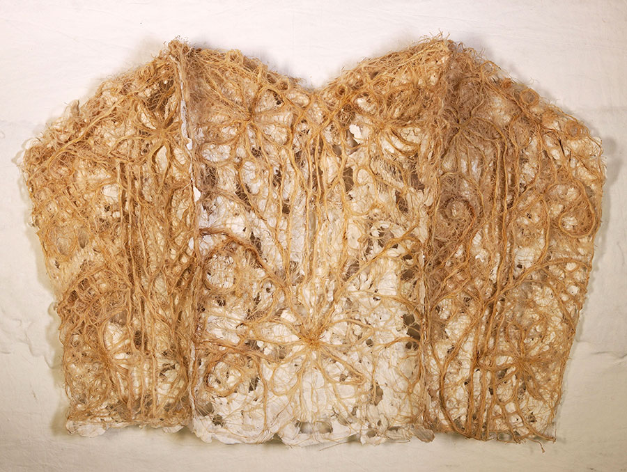 Leah’s proposal featured fascinating experimental work with compostable materials. The project was seen to be an exciting beginning to the concept of organic grown ‘bridal lace’, using plant roots as a sustainable alternative to synthetic appliqued lace pieces.