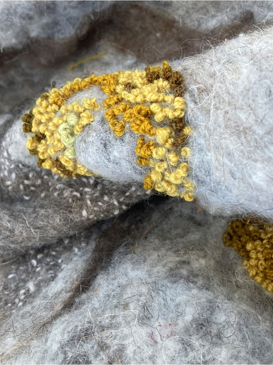 Mary drew on all of the above, and North Ronaldsay wool, to create 2/3D pieces primarily using felted, hand spun rovings and batts to further investigate the many ways in which textile practice encourages us to think about place, temporality, memory, identity and mutability.