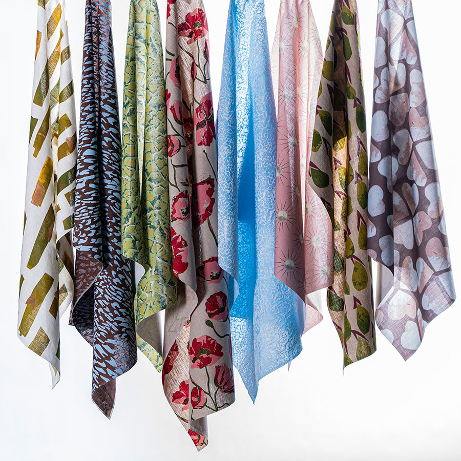 The judging panel found Roisin’s printed designs and execution of hand-printed and digitally printed techniques to be of the highest quality. Her nature-inspired motifs were truly beautifully drawn. Overall, a fantastic application, and we applaud her use of locally manufactured linens by Baird McNutt Weavers and her ambitions for ‘Studio Conway’.
